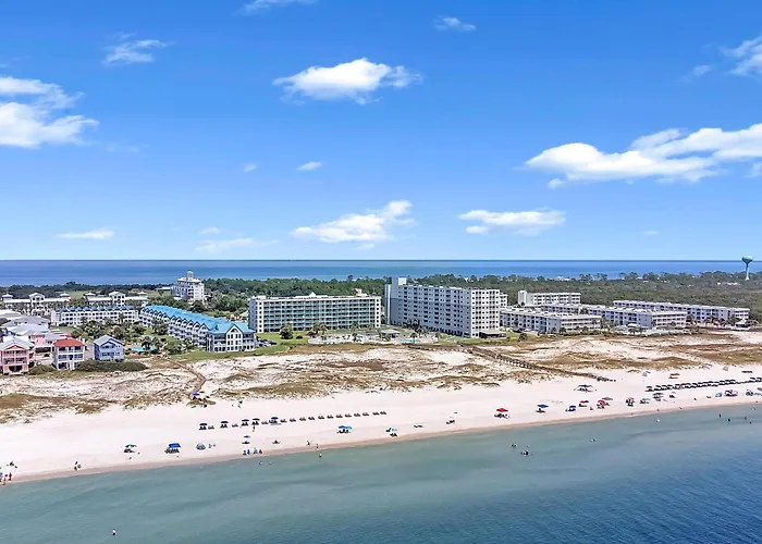 Deze 2-slaapkamer Gulf Shores Plantation-West 1350 villa is op 5 minuten lopen van Kiva Dunes Golf Club gelegen en biedt uitzicht op de zee. Dit vakantiehuis ligt op 4 km afstand van Sassy Bass Market Place en biedt een buitenzwembad en een sauna voor extra ontspanning.